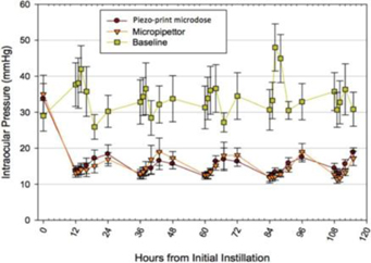 Multiple third-party studies have confirmed challenges with administering conventional eye drops, which include overdosing, poor compliance, imprecise dosing, variability in drop size, and difficulty with self-administration. One study in patients who were experienced in using eye drops and undergoing treatment for glaucoma for at least six months documented that nine out of 10 patients were unable to administer treatment correctly at the end of the six-month study. Patients on average administered almost twice the necessary number of drops with a mean number of drops instilled at 1.8 (+/1 1.2) and one patient administered up to 8 drops at one time. In addition, approximately 75% of patients risked bottle contamination or potential ocular trauma by having the eye drop container touch their eyes. Another larger study in 139 patients demonstrated that the proportion of patients who were able to correctly administer their eye drops was only 22%–30%. Similarly, other studies have demonstrated that the vast majority of patients either overdose or do not administer the required therapy to the eye correctly, which leads to unnecessary waste of medication.