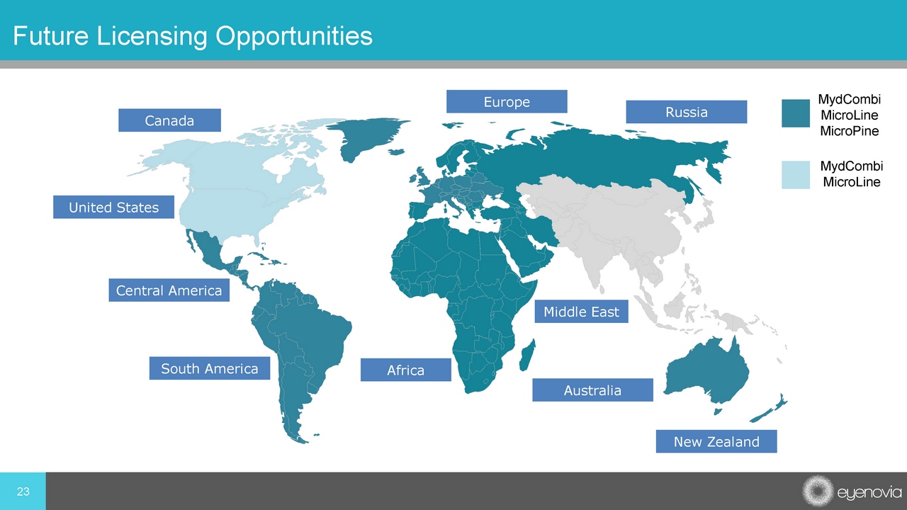 23 Future Licensing Opportunities MydCombi MicroLine MydCombi MicroLine MicroPine Canada United States Central America South America Europe Australia New Zealand Africa Russia Middle East