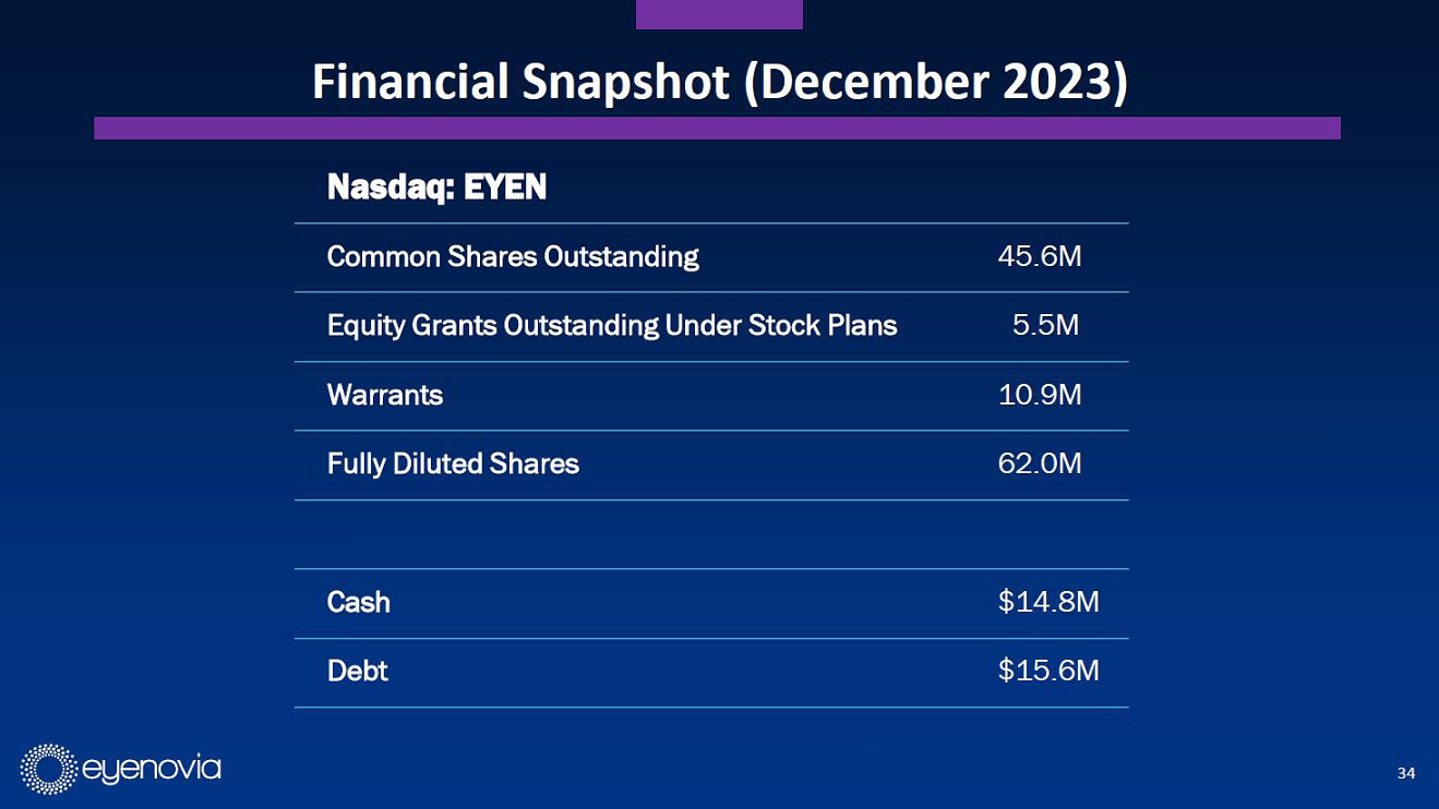 | 34 Financial Snapshot (December 2023) Nasdaq: EYEN Common Shares Outstanding 45.6M Equity Grants Outstanding Under Stock Plans 5.5M Warrants 10.9M Fully Diluted Shares 62.0M Cash $14.8M Debt $15.6M |