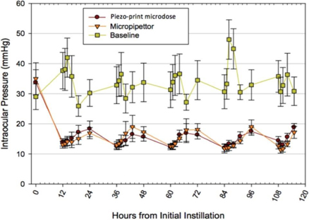 All of our product candidates utilize our patented piezo-print micro-dosing technology to enable the topical delivery of ophthalmic micro-therapeutics. Micro-dosing has long been the goal for ophthalmic medications because the eye only holds 6–8 µL of fluid, yet traditional eye drops overdose the eye with 30–50 µL of fluid, which frequently leads to adverse side effects such as redness, irritation and pain, increased risk of certain cardiac and respiratory side effects, as well as inconveniences such as overflow down the cheek and into the nose through the naso-lacrimal duct or under-dosing in patients that lack motor control to properly use a conventional eyedropper and thus administer the drops outside the eye. We believe our easy-to-use piezo-print technology may enable patients to consistently deliver doses of 6–8 µL of ocular therapeutics, representing maximum eye capacity, and reduce ocular exposure to preservatives and pharmaceutical ingredients by over 75%.