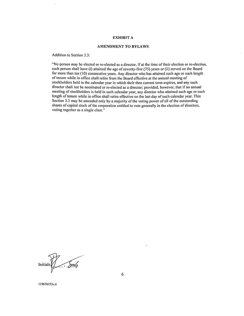 The Settlement Agreement also provides that Dr. Ernest Mario will resign from the Board, effective as of the date of the Settlement Agreement, and two other current directors will not stand for reelection at the 2022 Annual Meeting. The Issuer also agreed to (i) amend its bylaws to add a provision that imposes a mandatory retirement age of seventy-five (75) for directors of the Issuer and to provide that no director shall serve more than ten (10) consecutive years as a director of the Issuer and (ii) implement stock ownership guidelines for directors of the Issuer.
